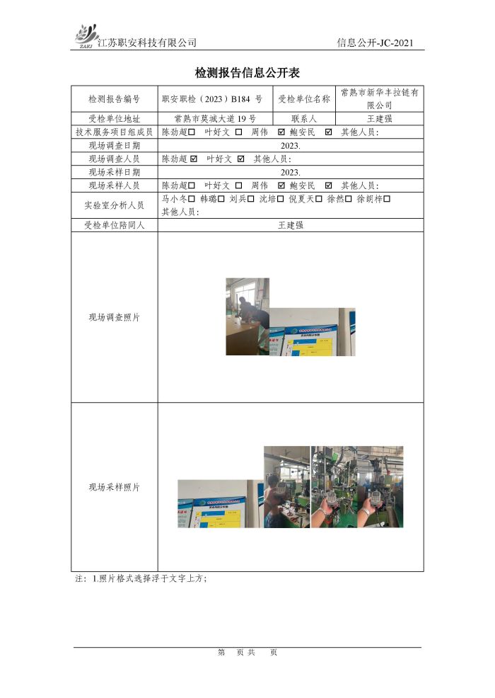 检测报告公示