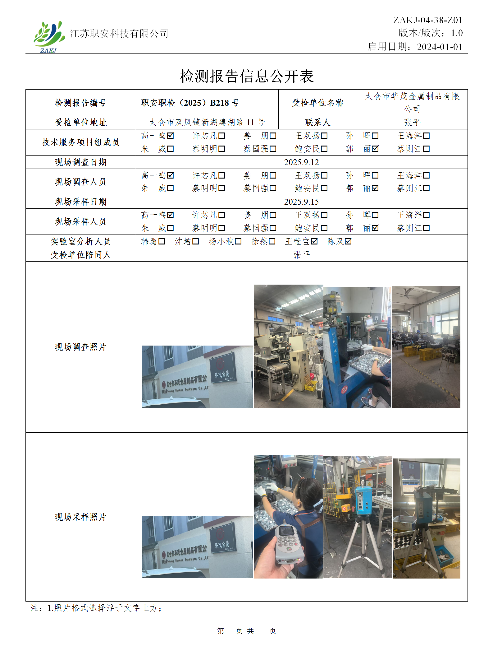 检测报告公示