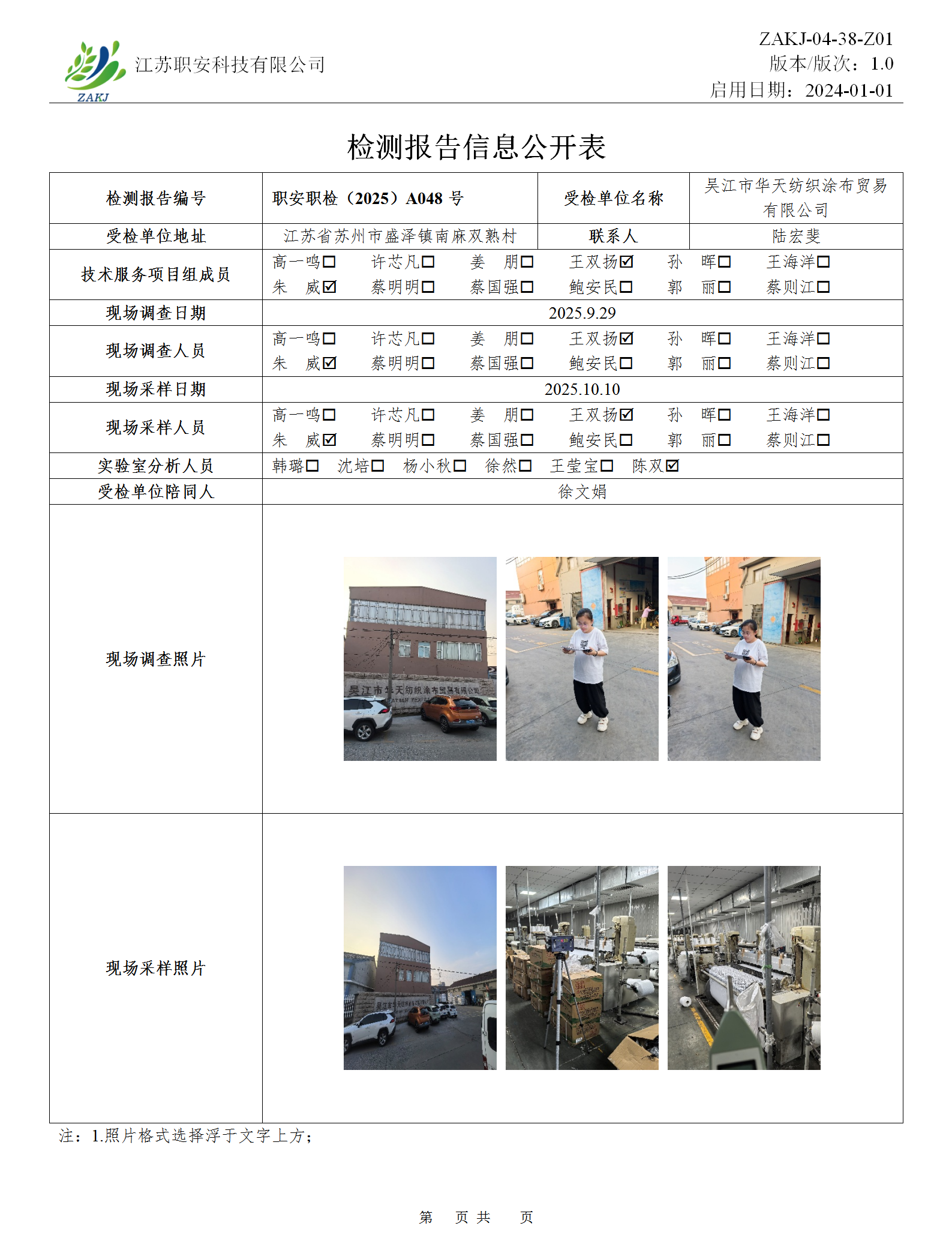 检测报告公示