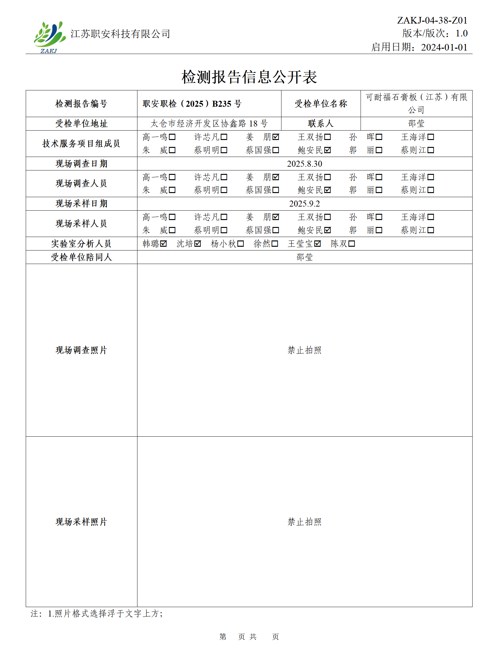 检测报告公示