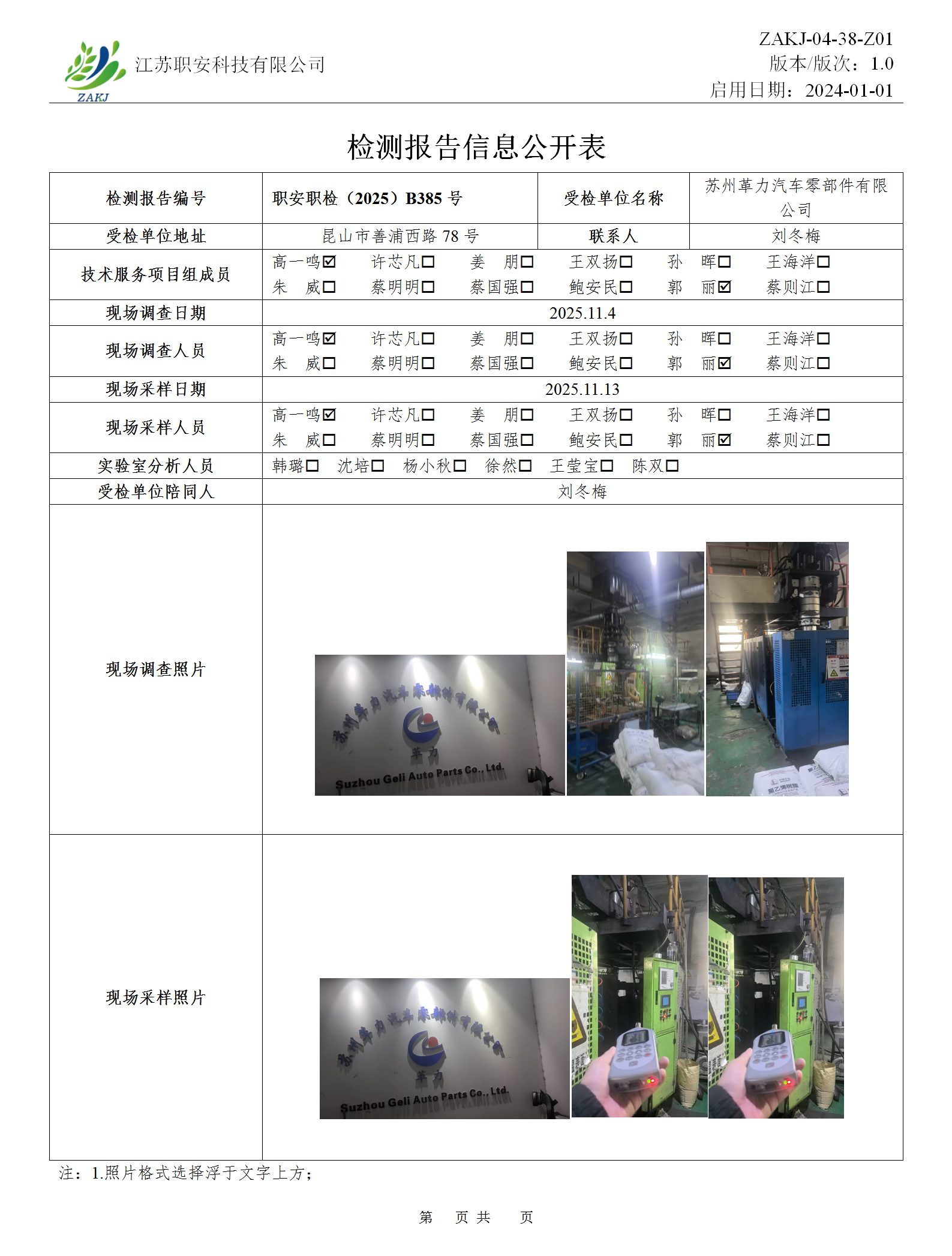 检测报告公示