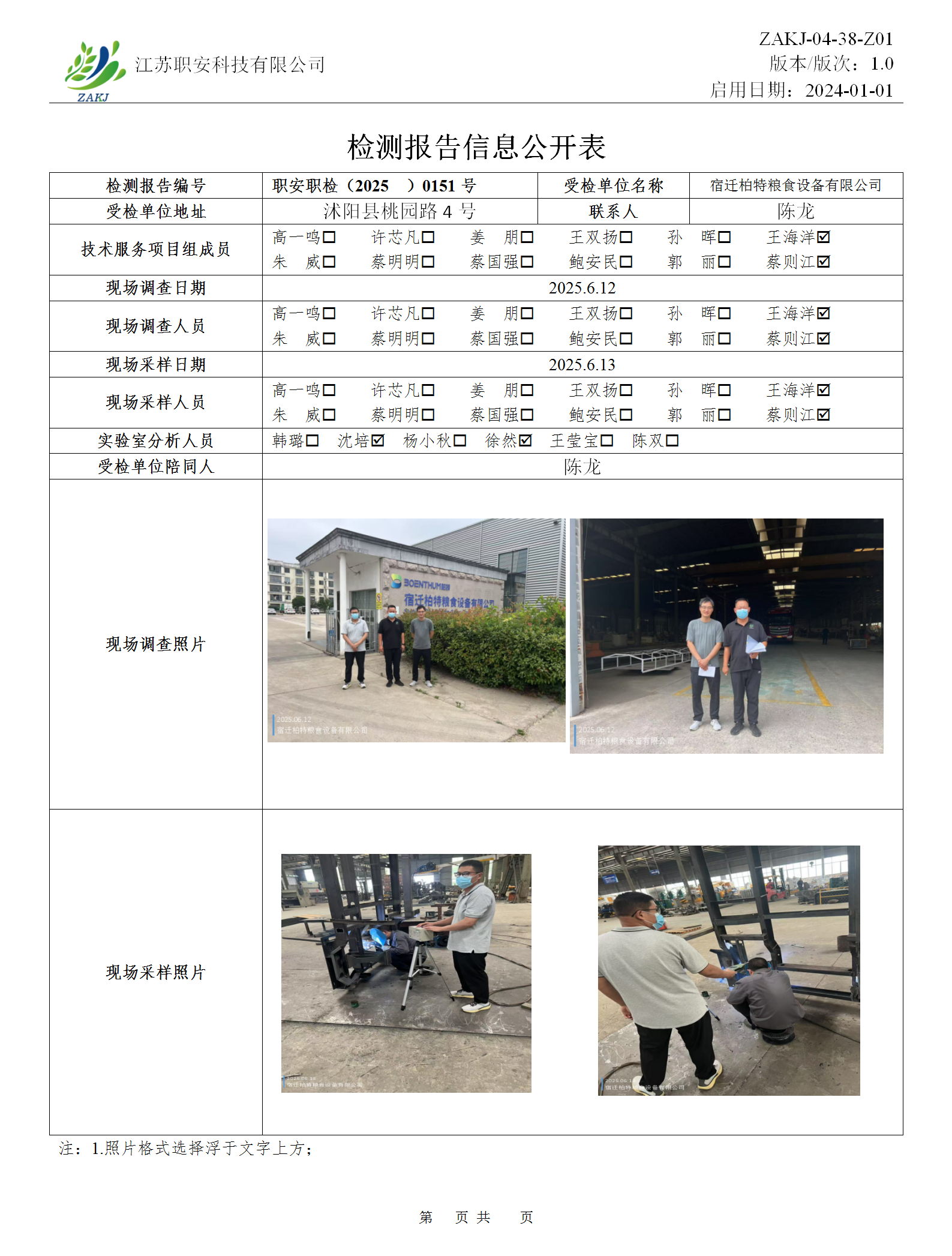 检测报告公示