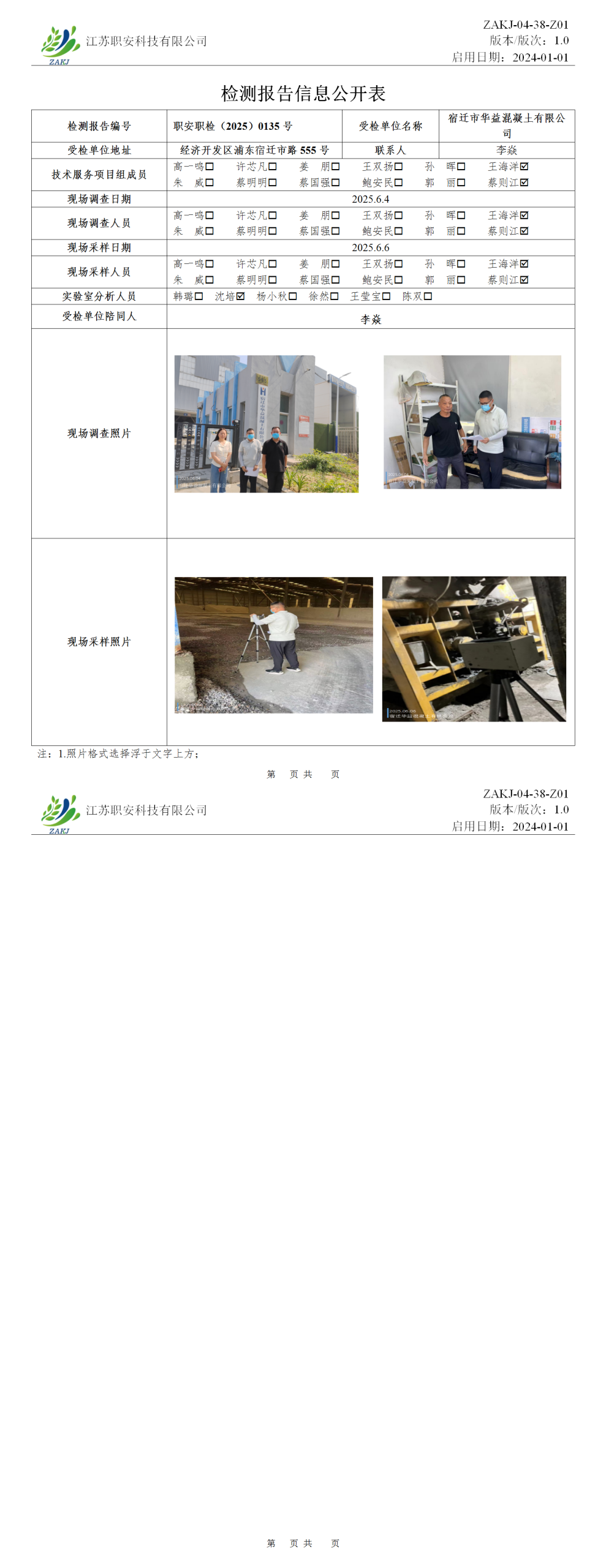 检测报告公示