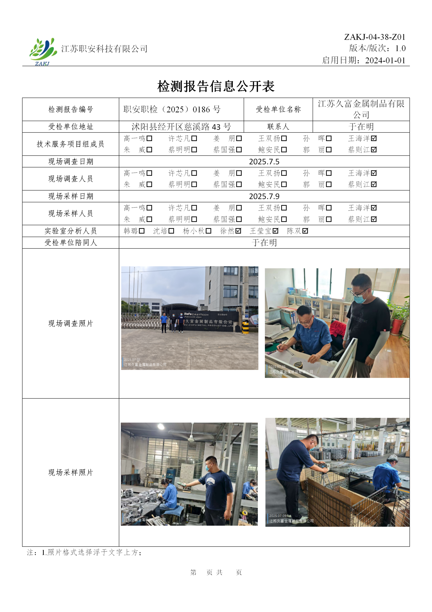 检测报告公示