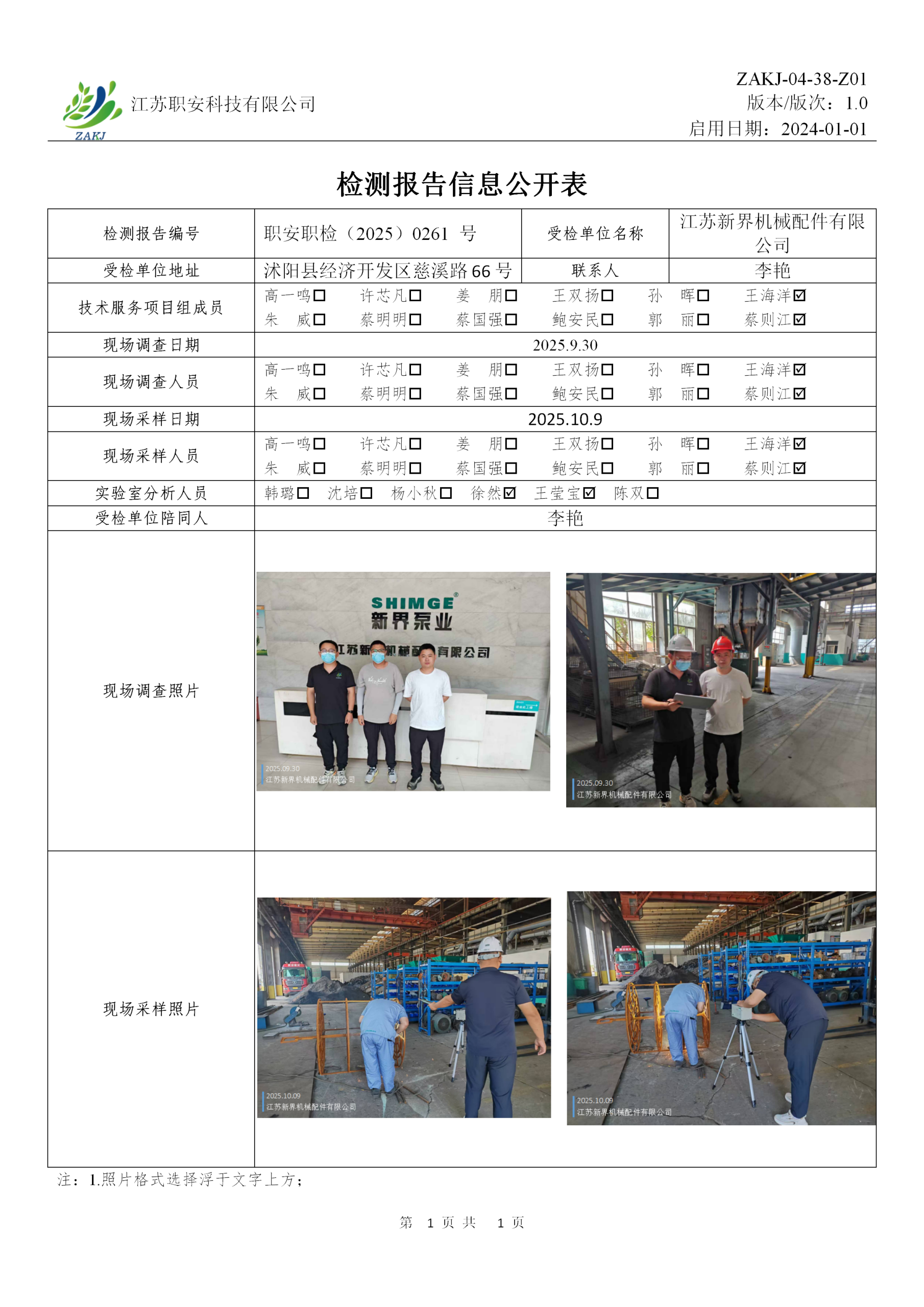 检测报告编号 职安职检(2025)0261 号