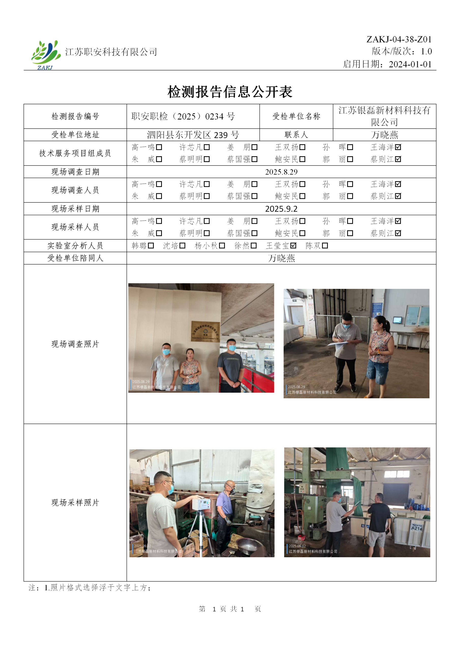 检测报告公示