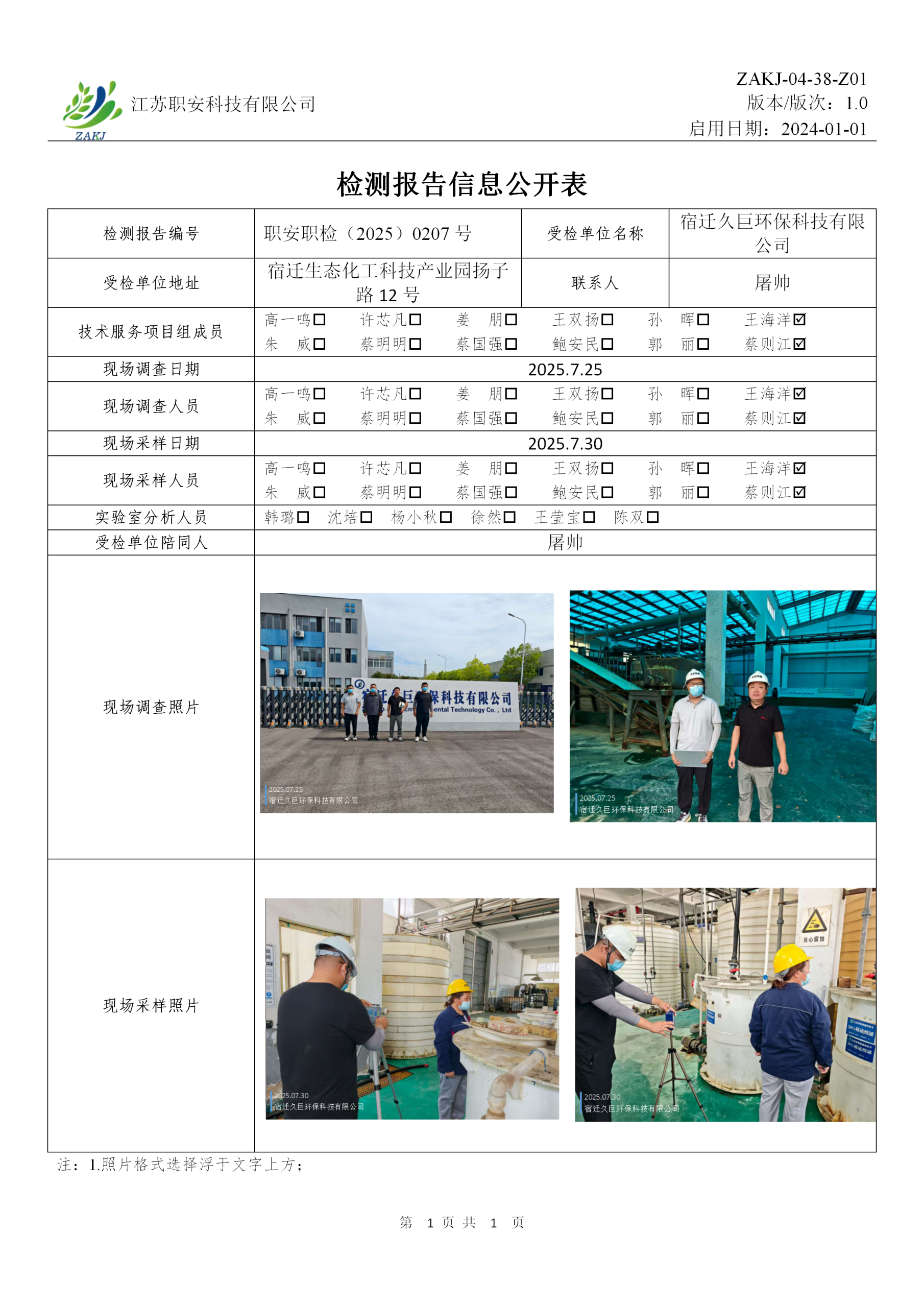 检测报告公示