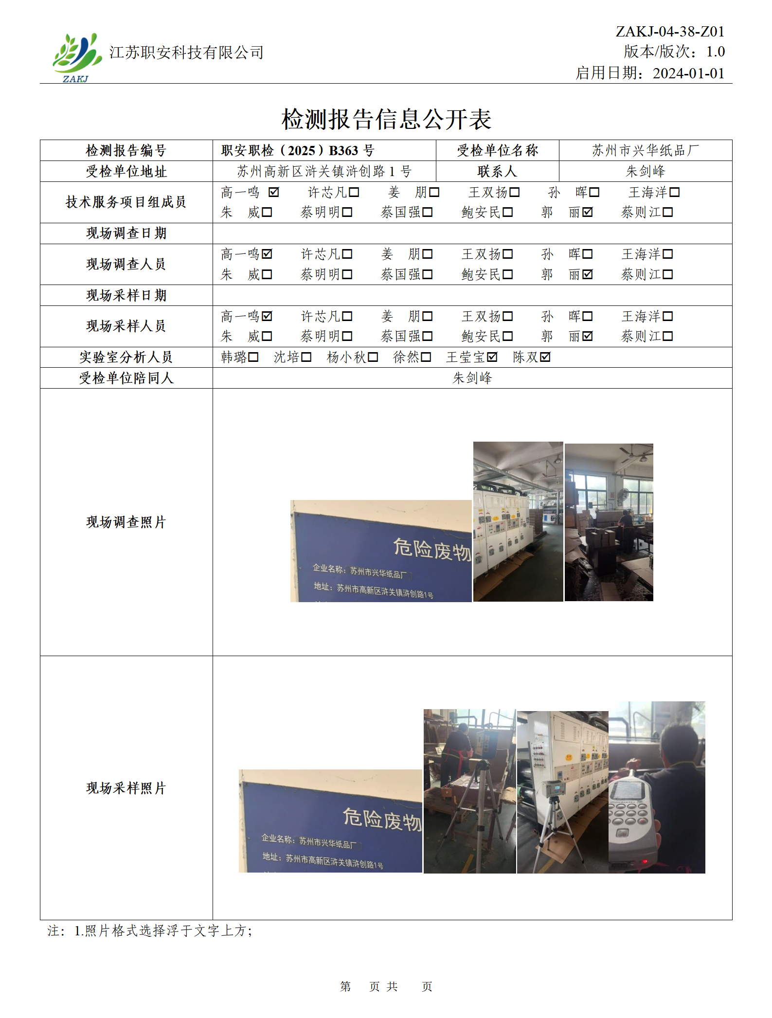 检测报告公示