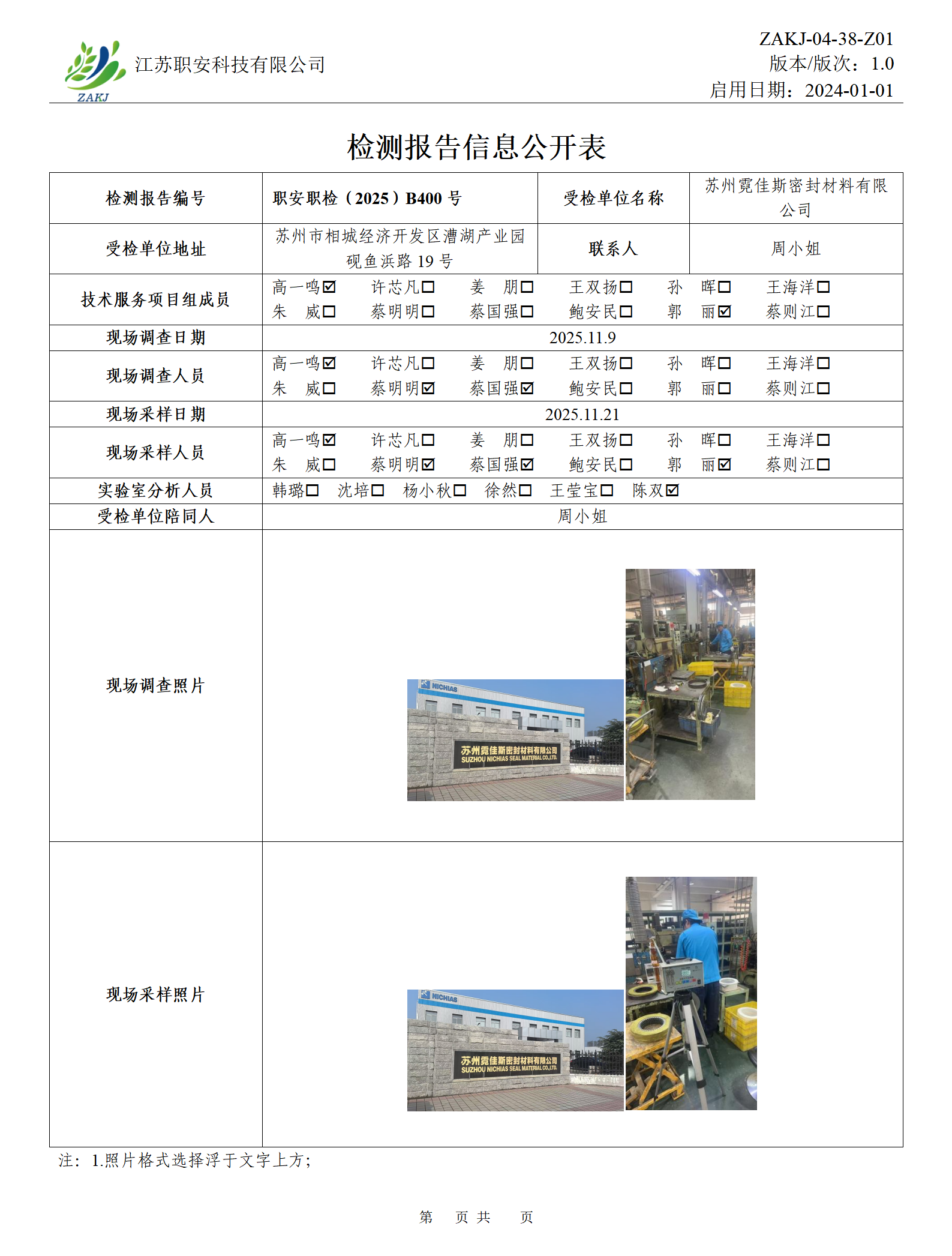 检测报告公示