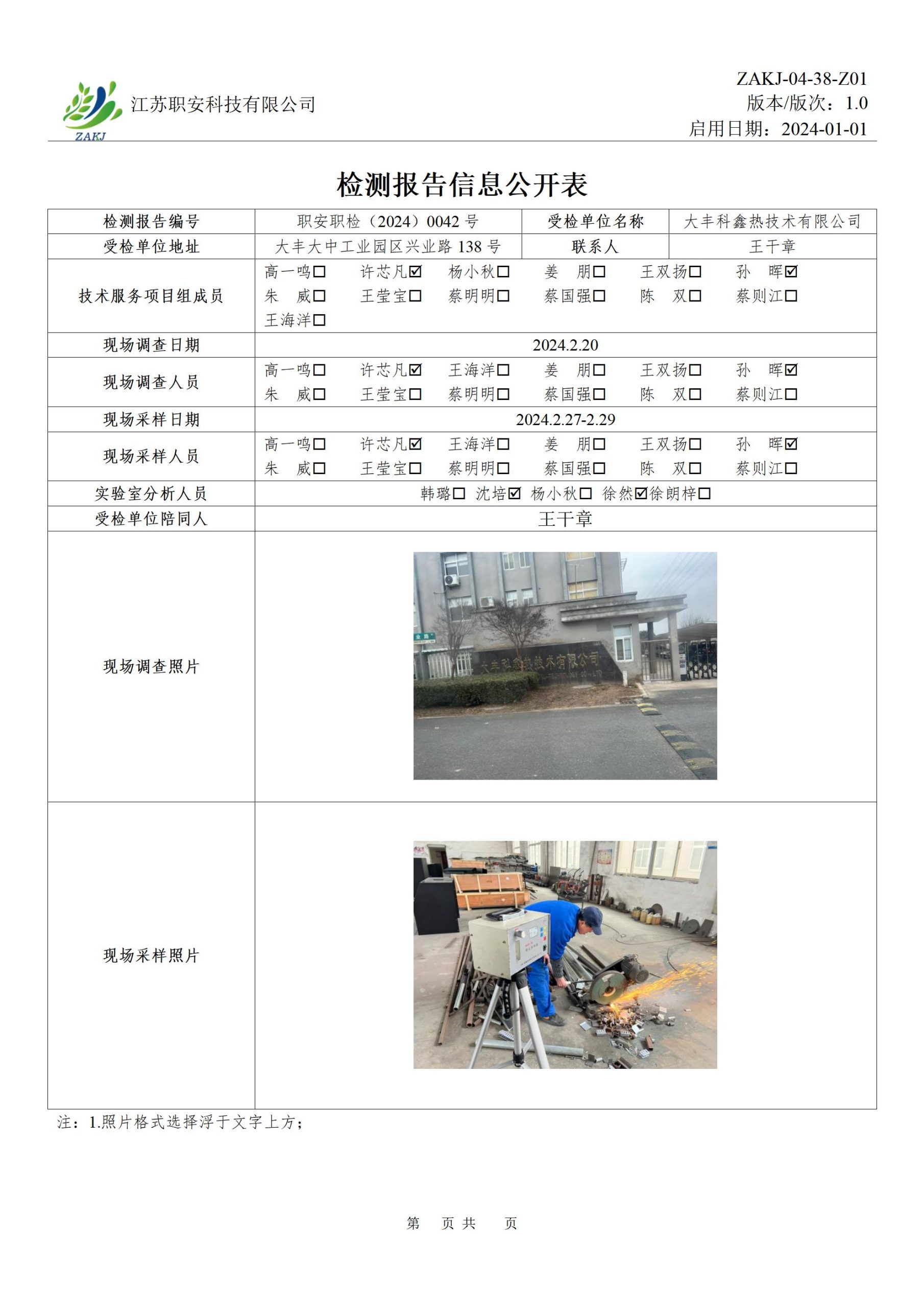 检测报告公示